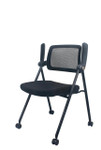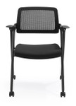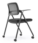 The space-saving flip-up seats allow the Flip V2 to nest for efficient storage in training, conference, and classroom environments. A black mesh back with black fabric seat is standard. Optional tablet arm available.